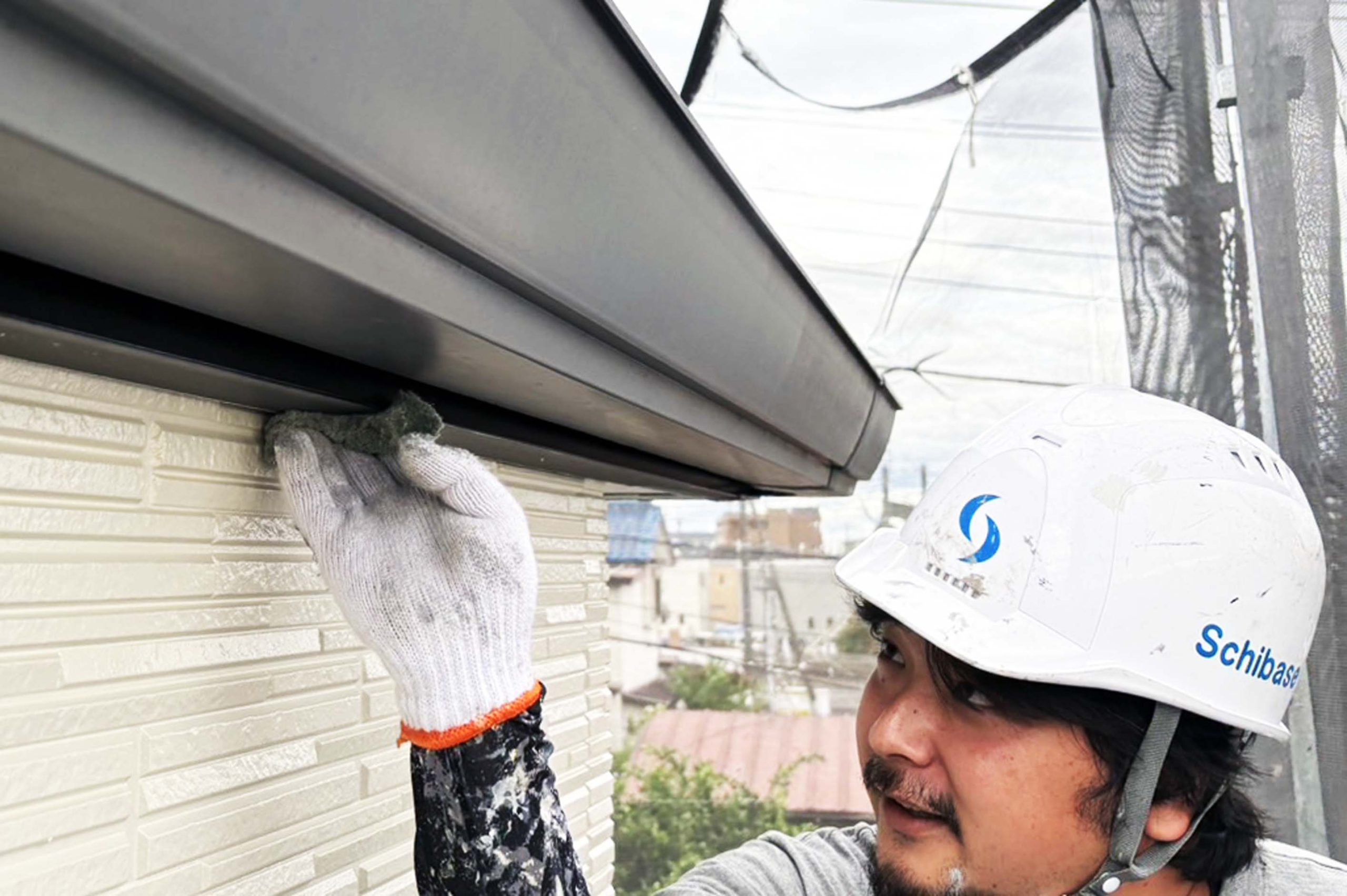 西面・東面は横樋・鼻隠の目荒らしをしてからクリーンマイルドシリコンの黒色で塗装しました。