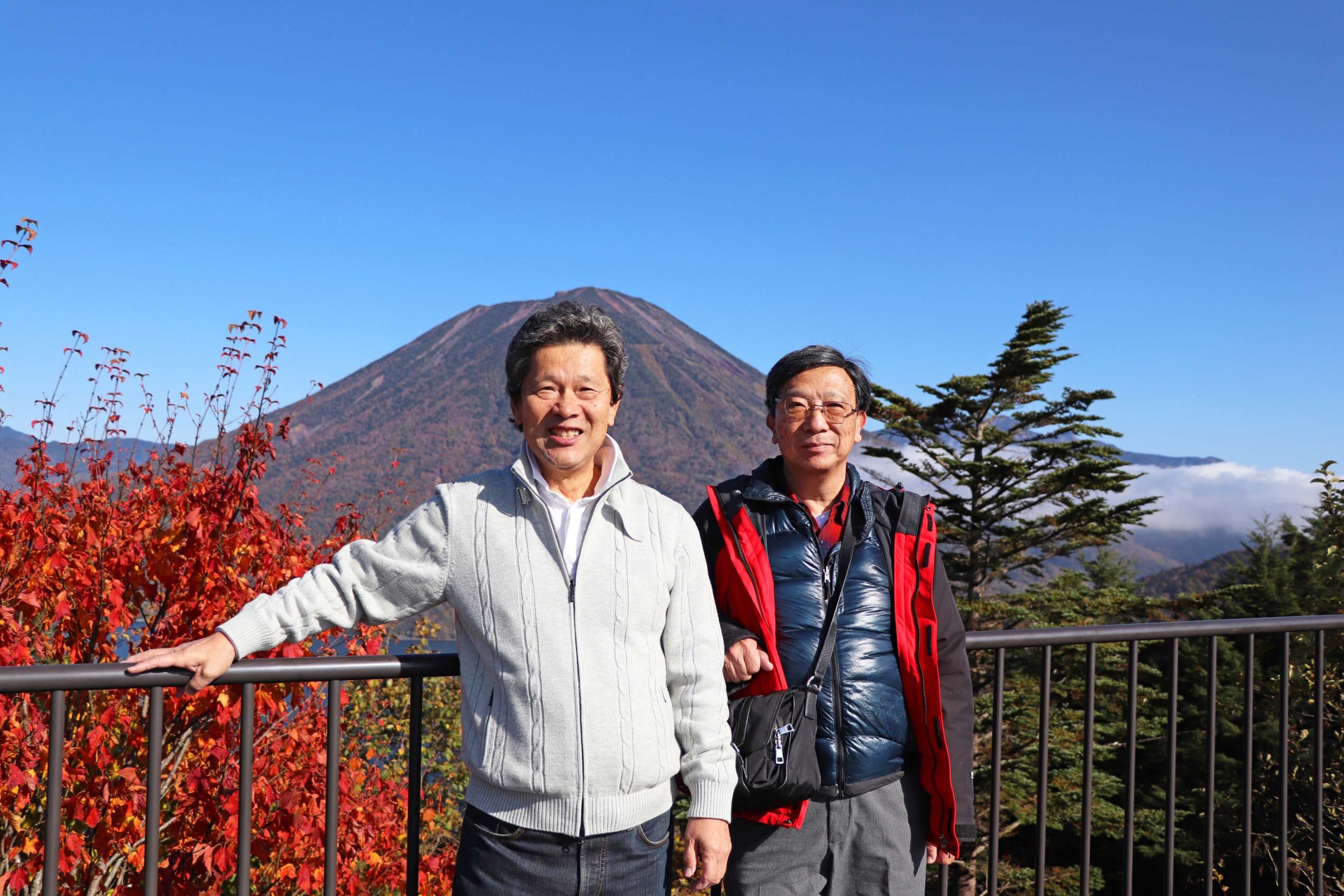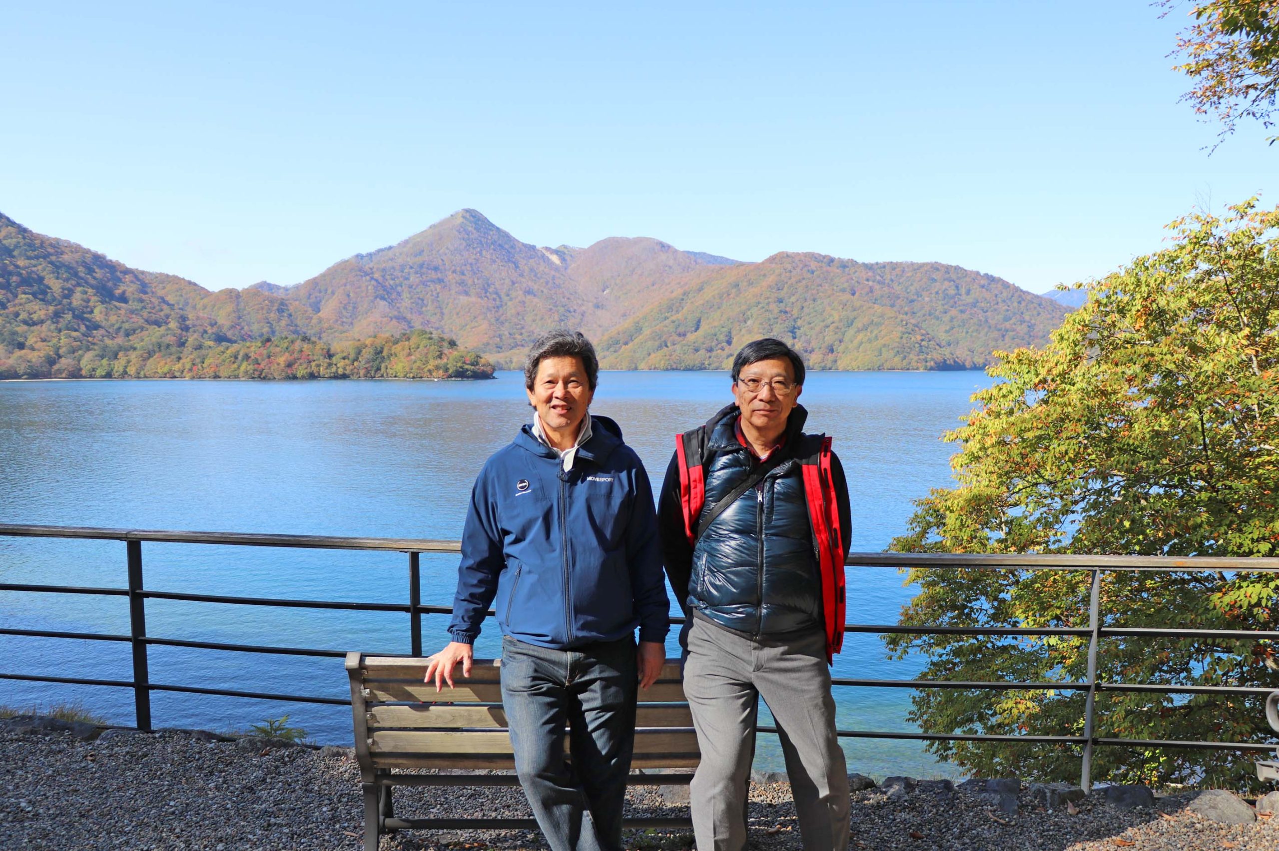 その後、イタリア大使館別荘記念公園で一休みして湖畔を散策しました。モミジや楓の赤やオレンジ、黄色と緑のグラデーション、2日とも快晴に恵まれて今回も大満足の旅行になりました。