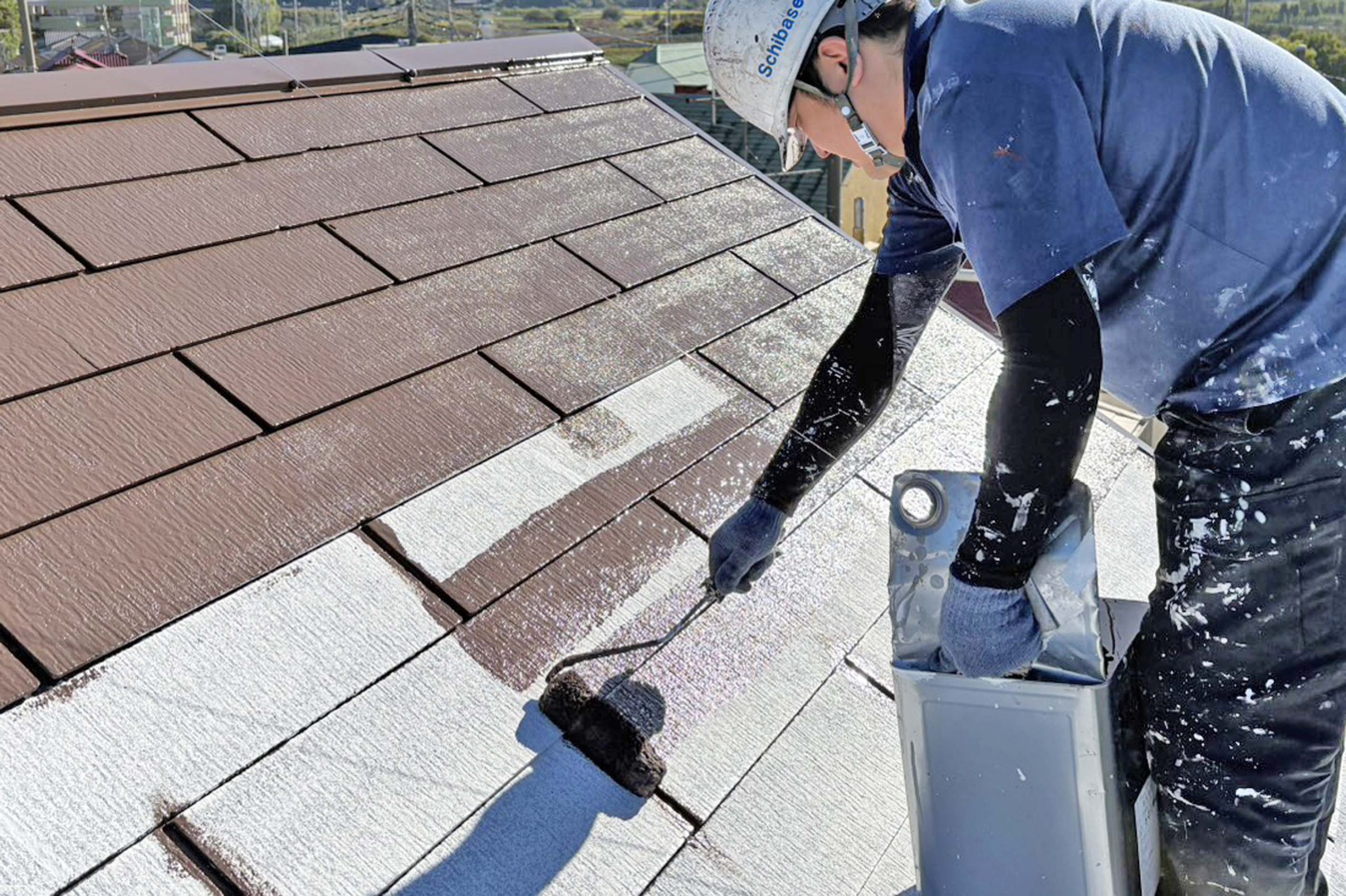 シーラーはスレート瓦の傷んだ箇所に良く染み込んで補強をし、微細なひび割れも塞ぎます。また仕上塗料との接着を良くする働きが有ります。