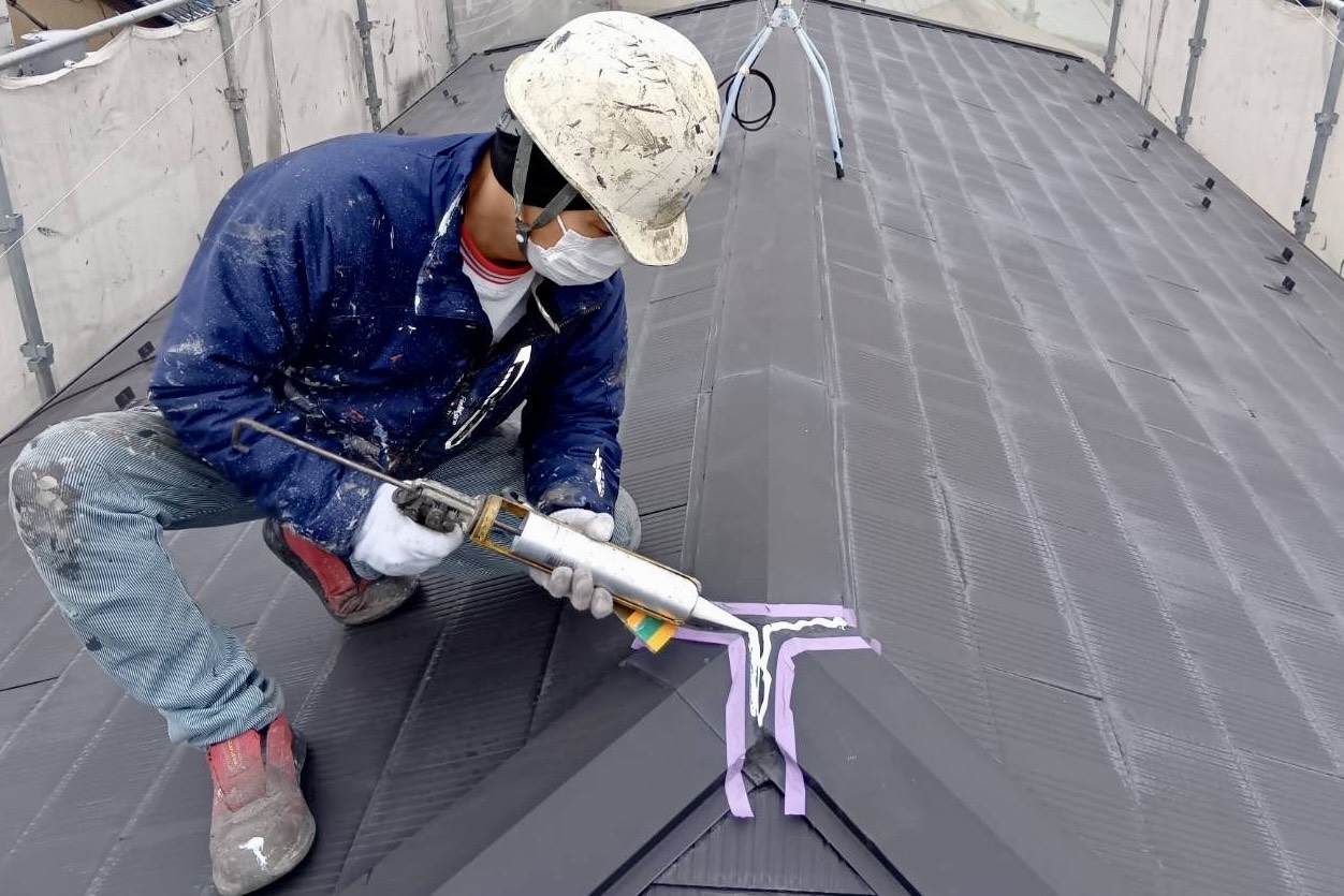 シーリングというのは竣工時にはもちろん、経年劣化や建物が歪んだ時にできる隙間や穴、ひび割れ等が生じて雨水が侵入し易い箇所をコーキング等で埋めて塞ぐ事です。