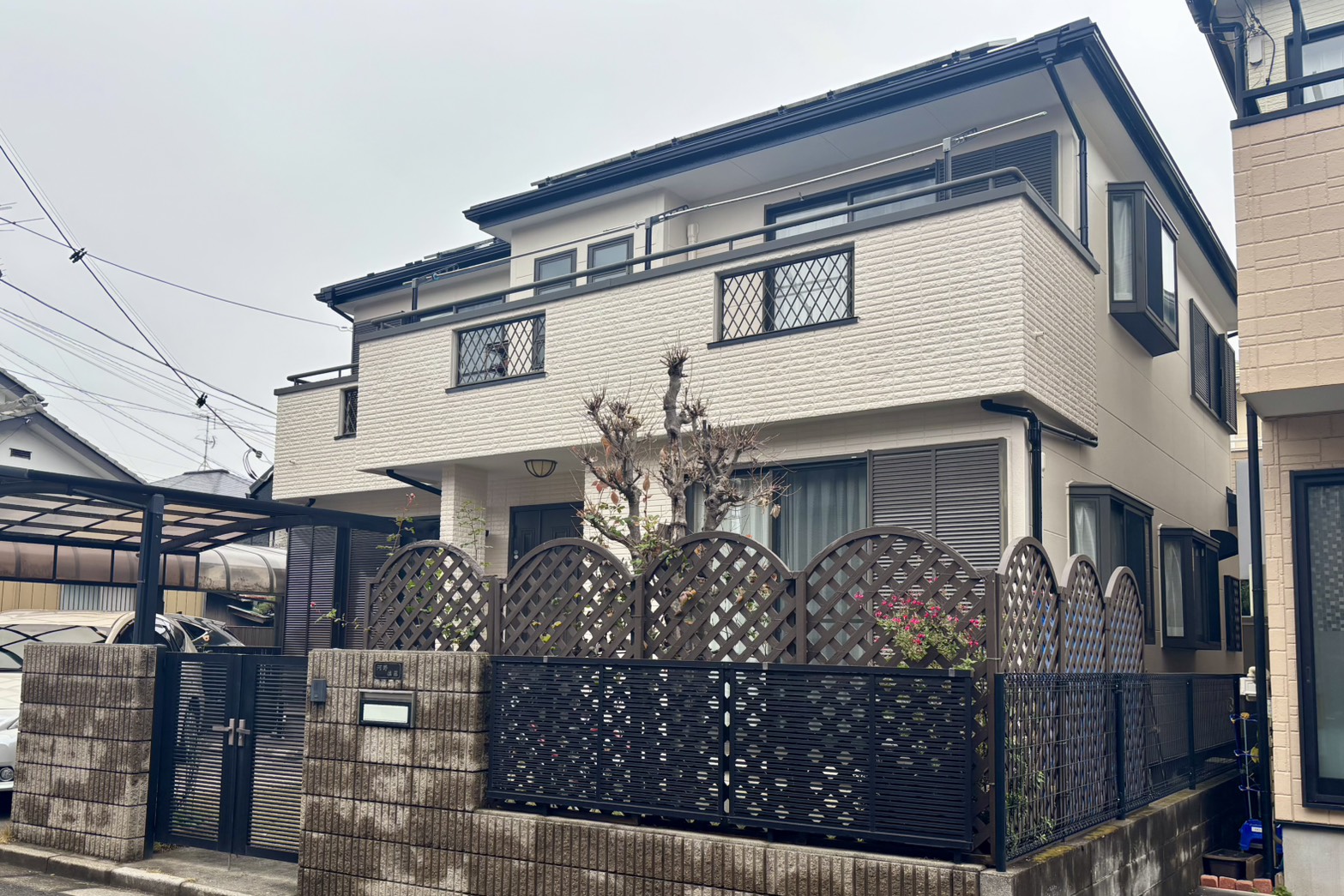 さいたま市見沼区のK様邸で屋根のカバー工法による改修と外壁塗装、付帯部分の補修と塗装、バルコニーFRP(繊維強化プラスチック)防水トップコートが完工しました。