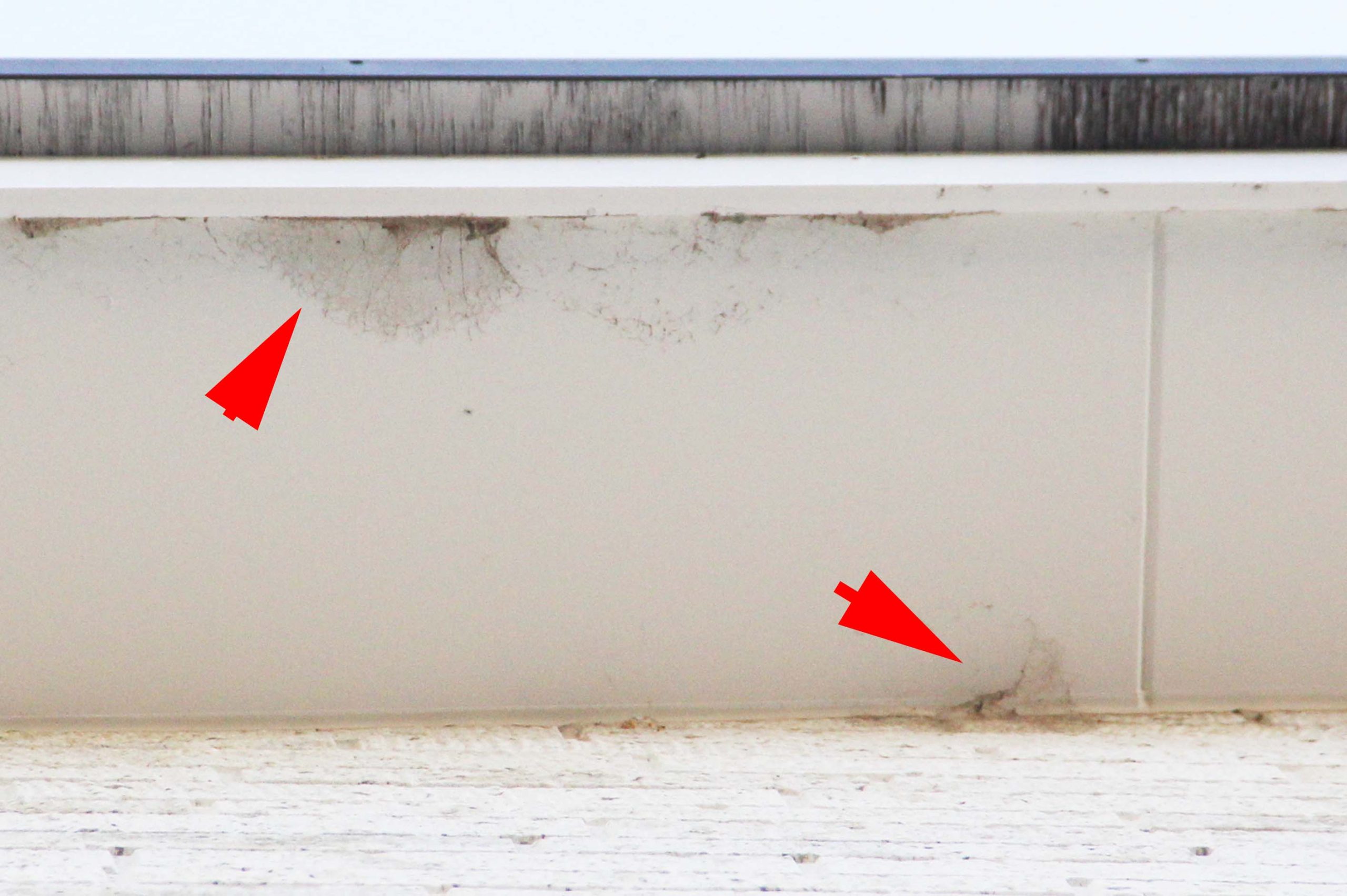 外壁は痛みが少なく、比較的良好でしたが、軒天の黒いシミは雨水がしみ込んできているので注意が必要です。虫歯に例えると表面のエナメル質が傷んで、象牙質も浸食され神経まで侵されている状態でした。できるだけ早く補修した方が良いと思います。