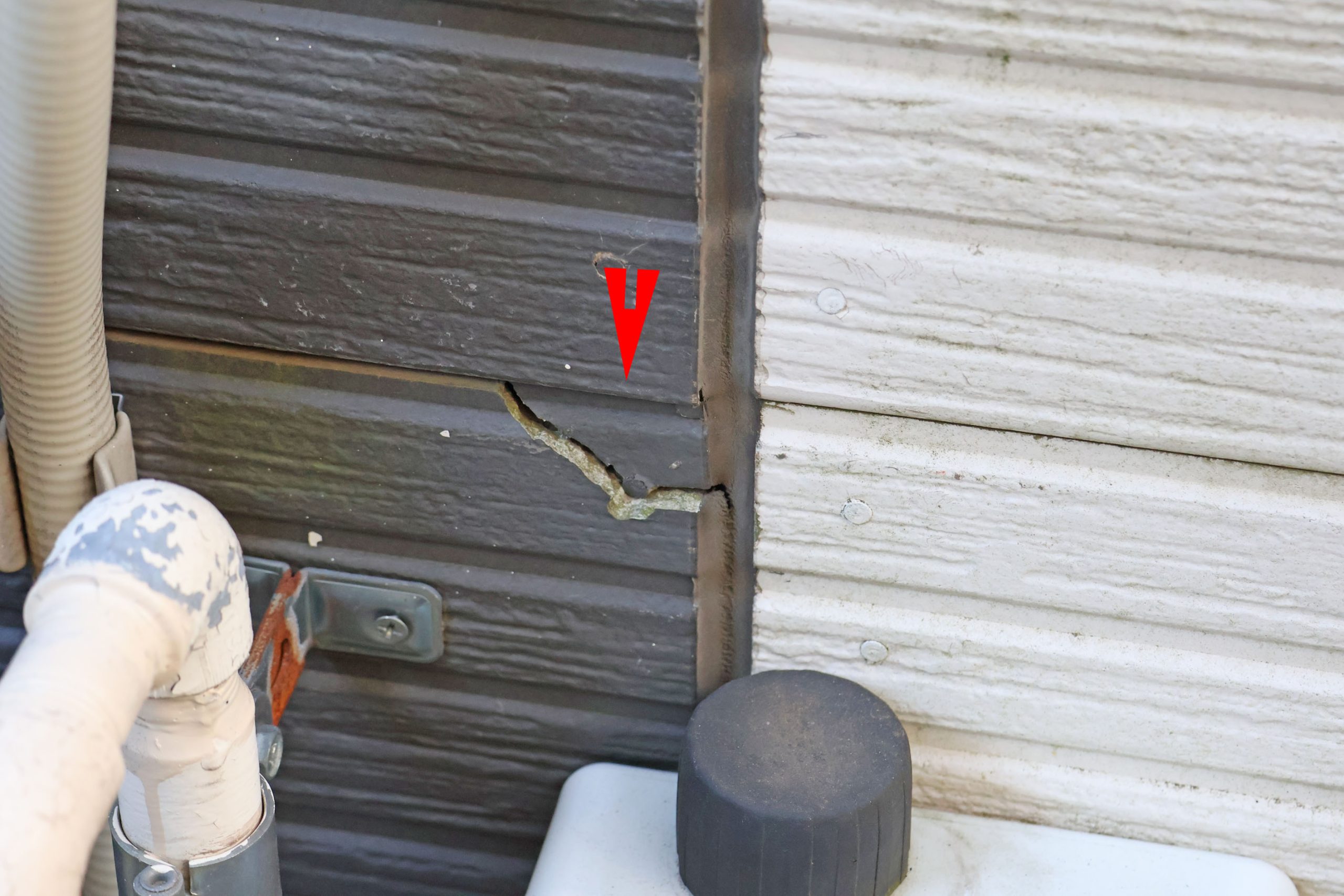 この窯業系サイディングボードは釘打ち留めがされていましたが、その部分の割れがとても多く、早めに補修しないとここから雨水を吸って脆くなってしまいます。