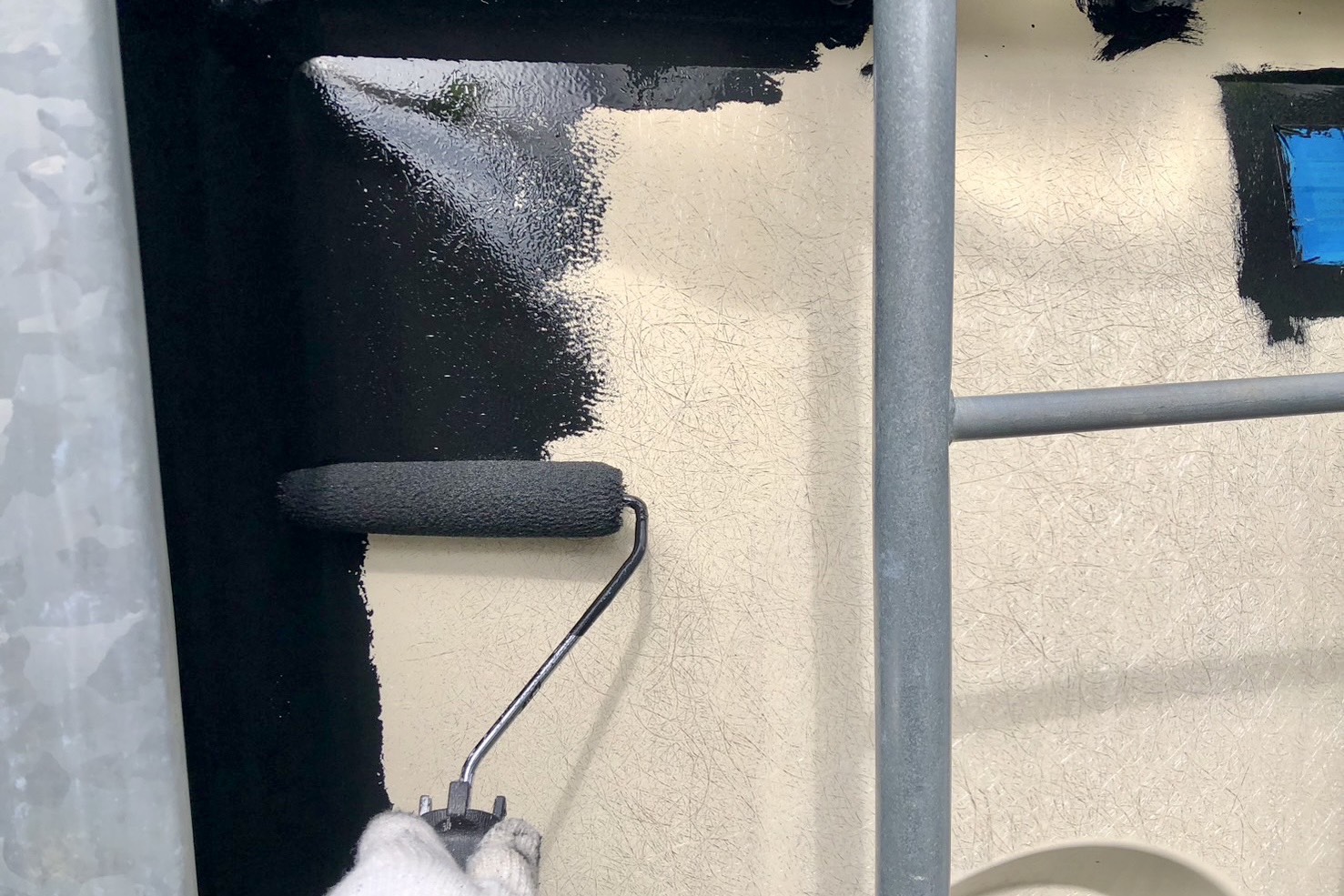 さいたま市大宮区のDマンションの受水槽でケレン、養生、FRP本体のボルトの錆止め塗装、遮光塗装、ラッキングパイプのケレン・錆止め塗装が完了しました。